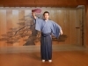 能舞台は数名から十数名で成り立ちますが、どういう人たちかと言うと、コーラスのような謡(うたい)、「地謡(じうたい)」と呼ばれる方々。小道具の受け渡しをしたり、舞台上でハプニングが起きたとき~たとえば衣裳が歪んだり落ちたりしたとき~に対処したり、大きな役割としては演者が病気などで舞台に立てなくなったときに代役を担ったりするのが「後見」。