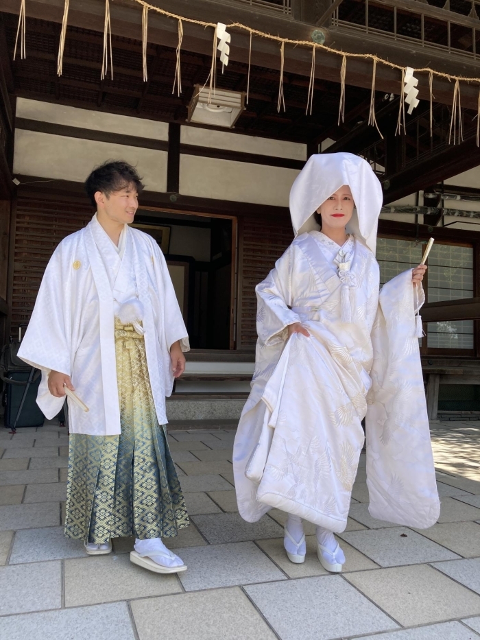 お色直し後の二人。藤森神社にて