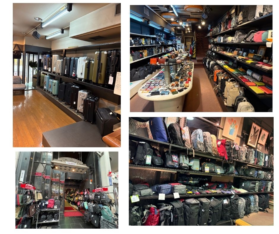 旅行に欠かせないスーツケースやショルダーバッグ は、大手筋商店街の「サハラ」で揃います。