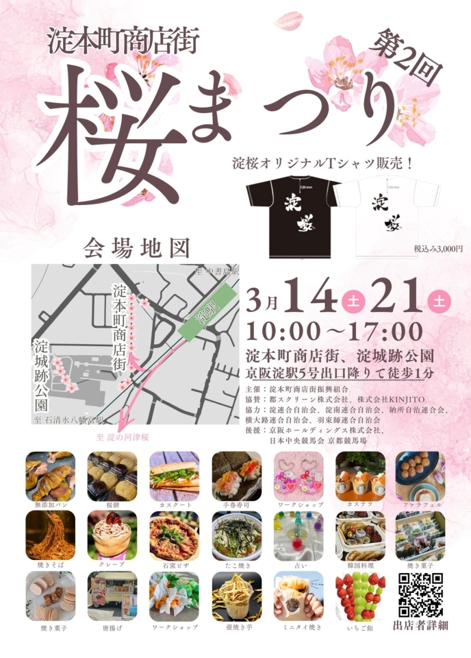 今年はオリジナルの『淀桜Tシャツ』の販売もあったり、淀周辺の農家が集まって直売を行う『五五市』や学生達が立ち上げる魅力的な体験ができる『よどでどーよ。』も同時に開催されます!